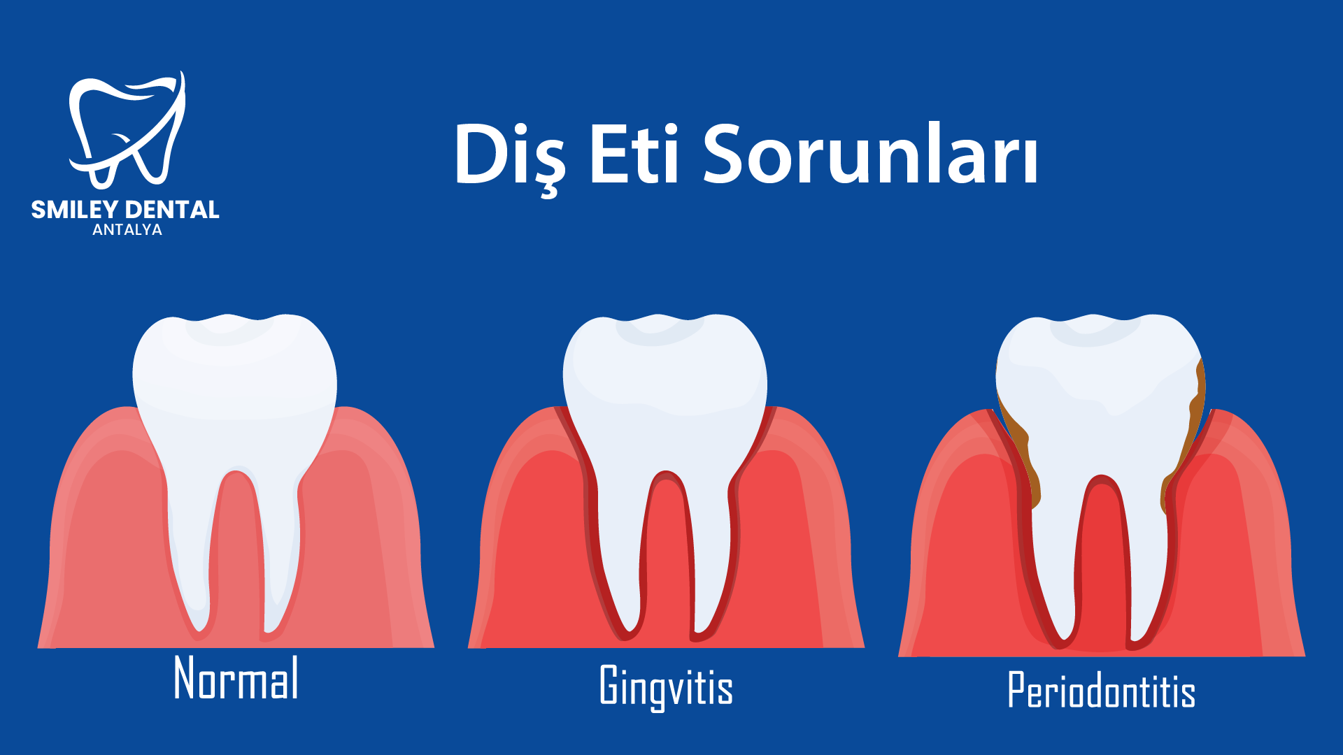 Gülüşünüz genel sağlığınız ve mutluluğunuz hakkında çok şey ifade eder. Ancak, canlı bir gülümsemenin genellikle gözden kaçırılan bir yönü diş etlerinizin sağlığıdır. Sağlıklı diş etleri, güçlü dişler ve güzel bir gülümseme için temel teşkil eder. Diş eti sorunları ortaya çıktığında, daha fazla komplikasyonu önlemek için en kısa sürede profesyonel tedavi aramak son derece önemlidir. Smiley Dental Antalya olarak, diş eti tedavilerinde uzmanlaşmış olup, gülüşünüzün sağlığını ve güzelliğini geri kazandırmak için hizmet vermekteyiz.
